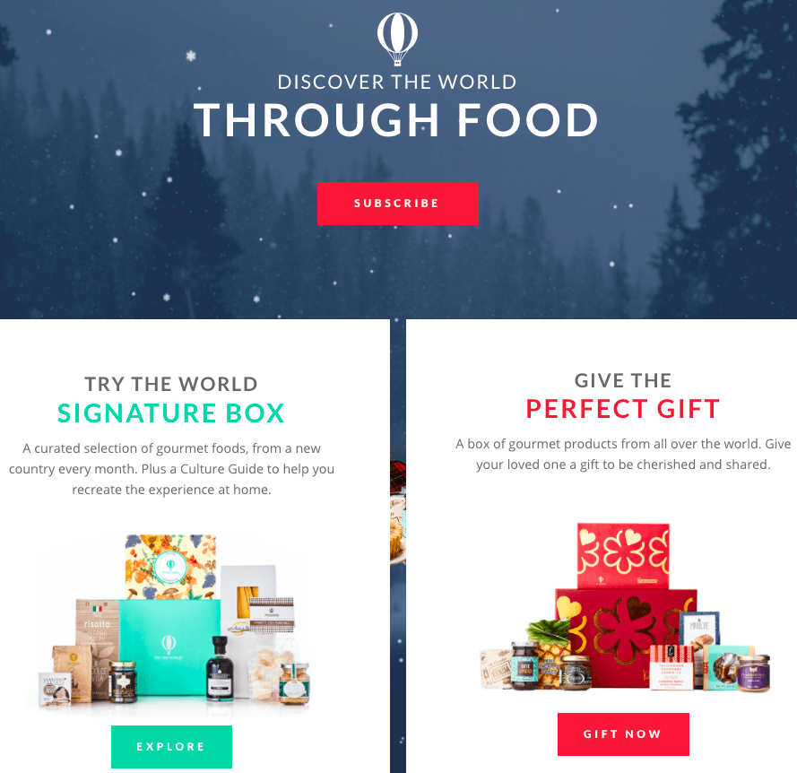 在網頁的最上方他們就有很明顯的「EARN $ 15」吸引造訪網頁的人點選。他們采用的轉換機制是透過分享給你的朋友,就能獲得 $ 15 元的線上購物禮物卡,而你的朋友在訂閱電子報注冊之后也能獲得 2 個免費的環游世界合組。